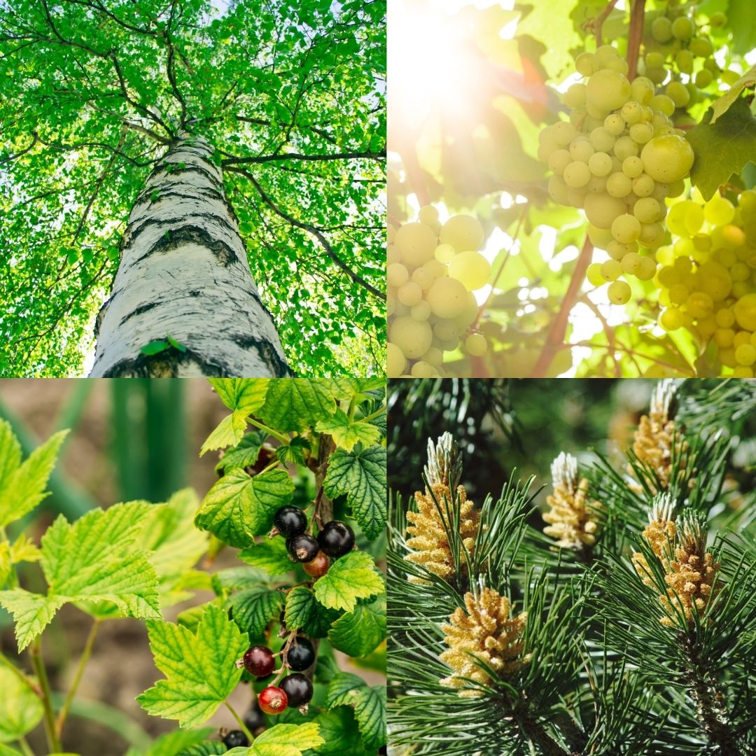 - Knospenkomplex mit Weinrebe, schwarzer Johannisbeere, Bergkiefer und Silberkirke