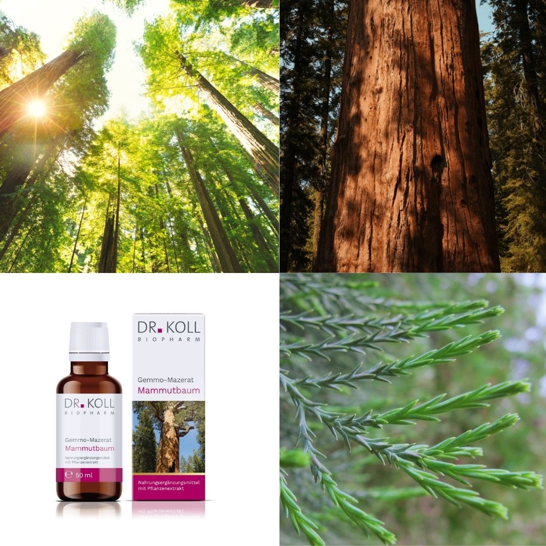 Der Mammutbaum ist ein faszinierendes Naturwunder, das uns mit seiner Größe, Langlebigkeit und Anpassungsfähigkeit beeindruckt. Diese Vitalität findet sich insbesondere in seinen jüngsten Trieben – seinen Sprossen. Diese sind die Grundlage des Dr. Koll Gemmo-Mazerats Mammutbaum. Der Pflanzenextrakt enthält natürliche Polyphenole, Aminosäuren und Enzyme, ist zu 100 Prozent vegan und glutenfrei.
