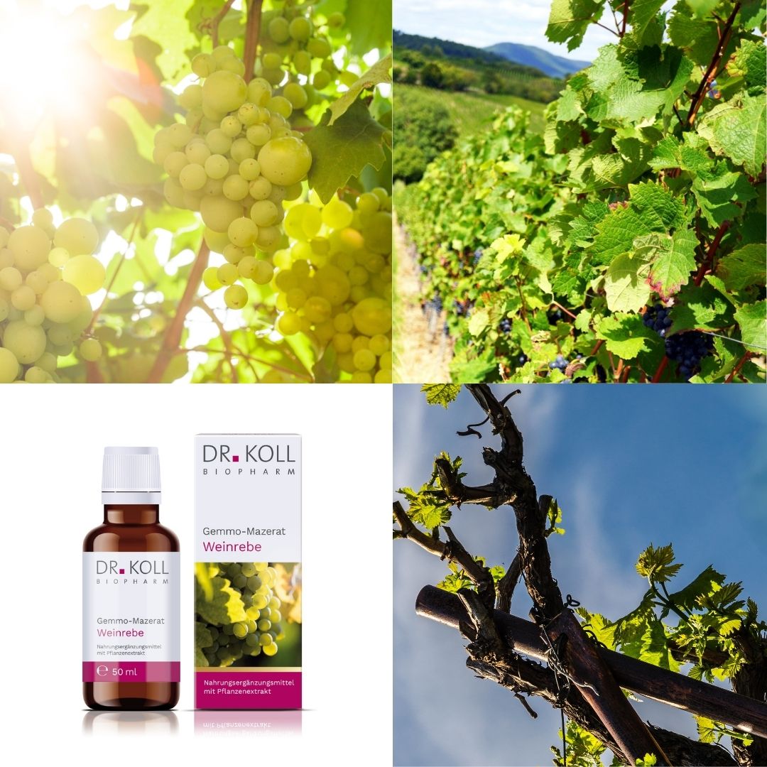 Für das Dr. Koll Gemmo-Mazerat Weinrebe werden frische Rebenknospen aus biologischer Ernte schonend in einem Glycerin-Alkohol-Wasser-Auszug verarbeitet. Jede Charge durchläuft interne Qualitätsprüfungen (Identität, Reinheit, mikrobiologische Kriterien).