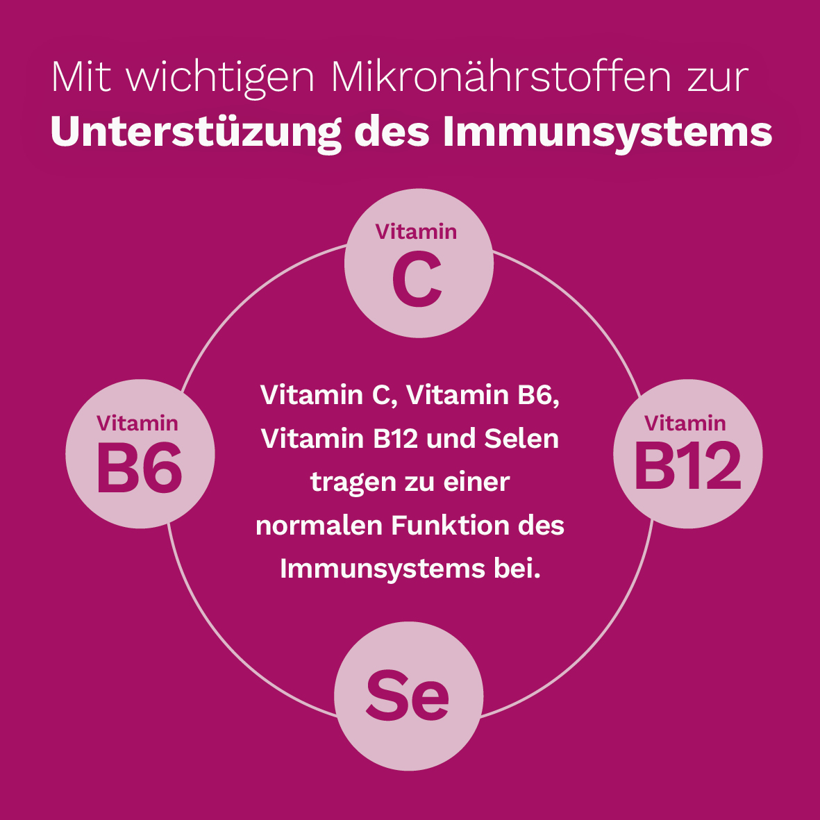 *Vitamin B12, Vitamin B6, Vitamin C, Selen tragen zu einer normalen Funktion des Immunsystems bei