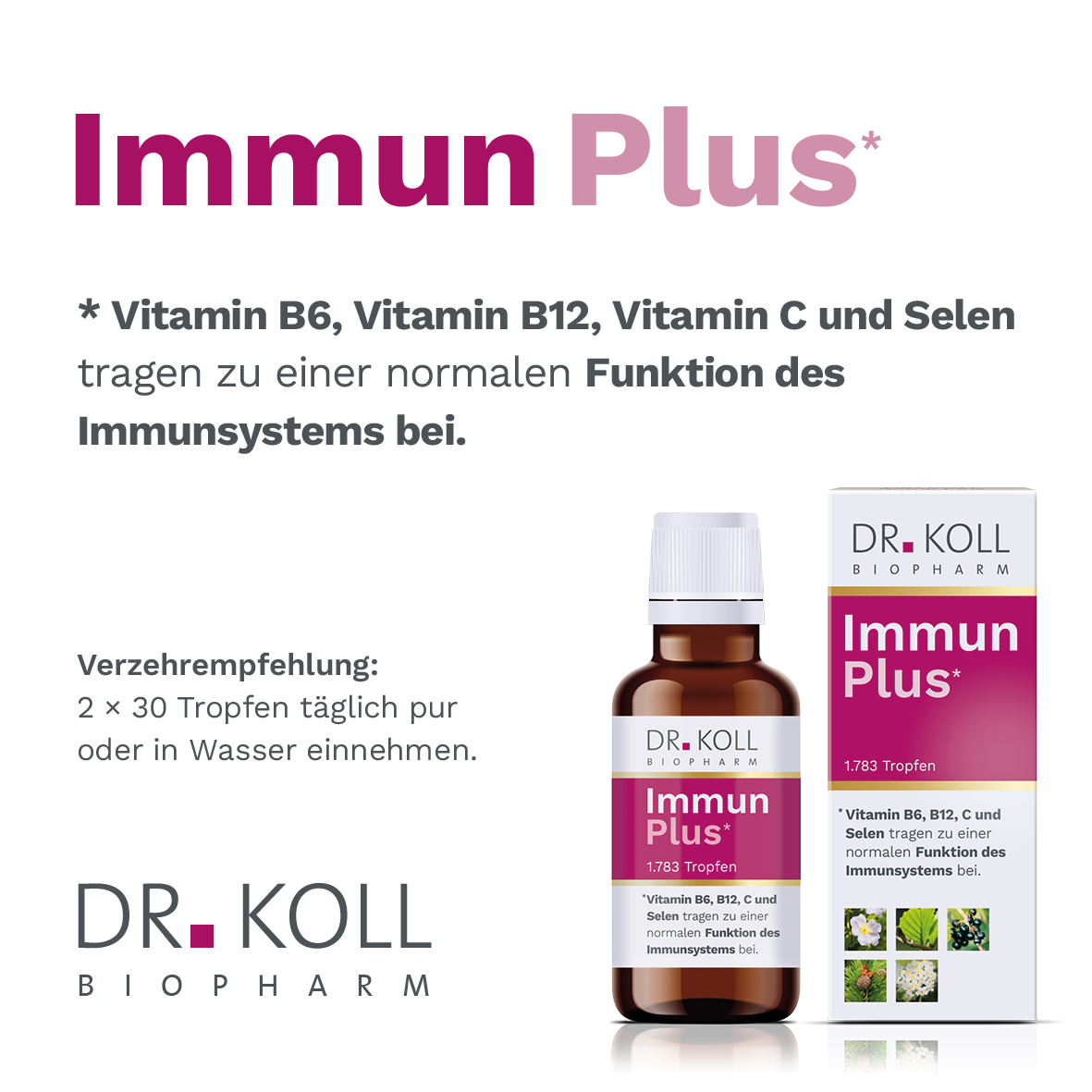 Ich mag das Immun Plus von Dr. Koll Biopharm. Vitamin C, B6 und B12 unterstützen mein Immunsystem in der kalten Jahreszeit. Vegan, bio und naturverbunden – klare Empfehlung.